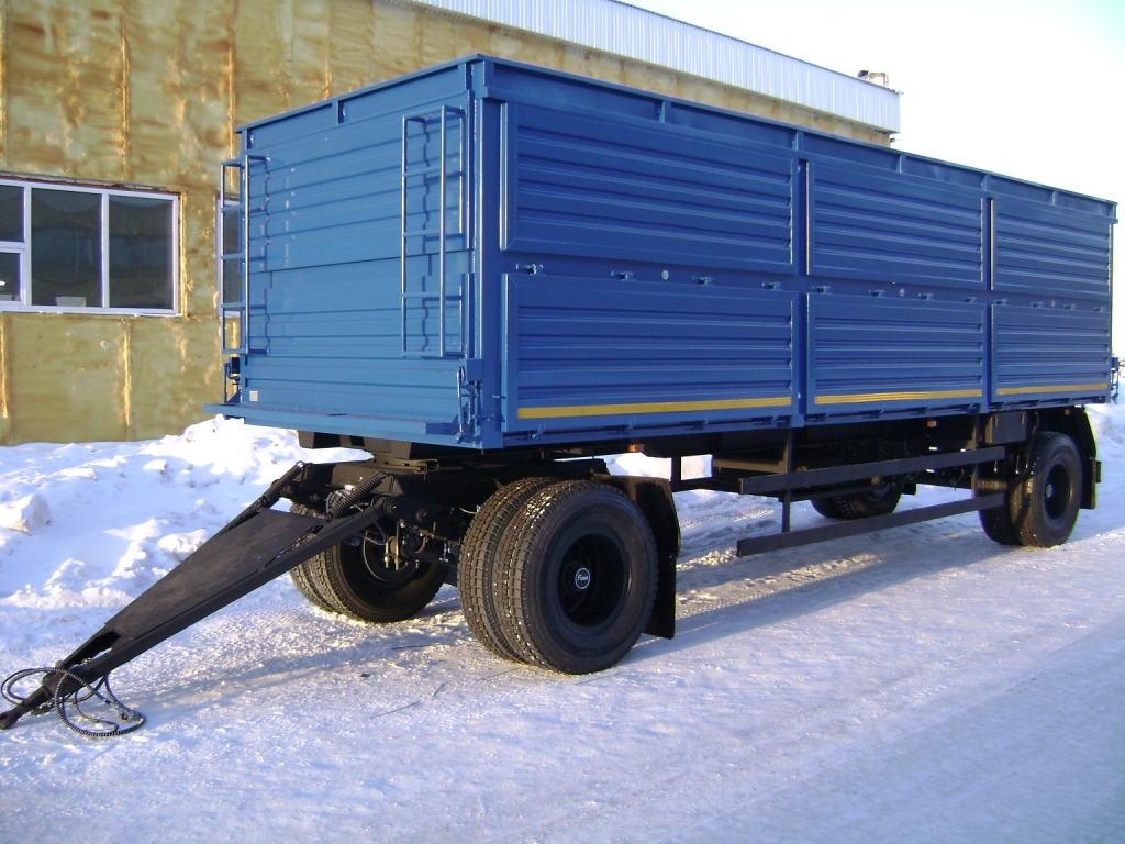 Бортовая платформа стальная, ручное запирание бортов, верхний ряд боковых бортов глухой, нижний ряд боковых бортов стальной подвижный с верхней навеской. Исполнение задней части: с открывающимися бортами с верхней навеской в нижней части ворот, так же возможность по выбору заказчика, установки распашных ворот, люка под зерномет. Пол стальной. Разгрузка на две боковые стороны.