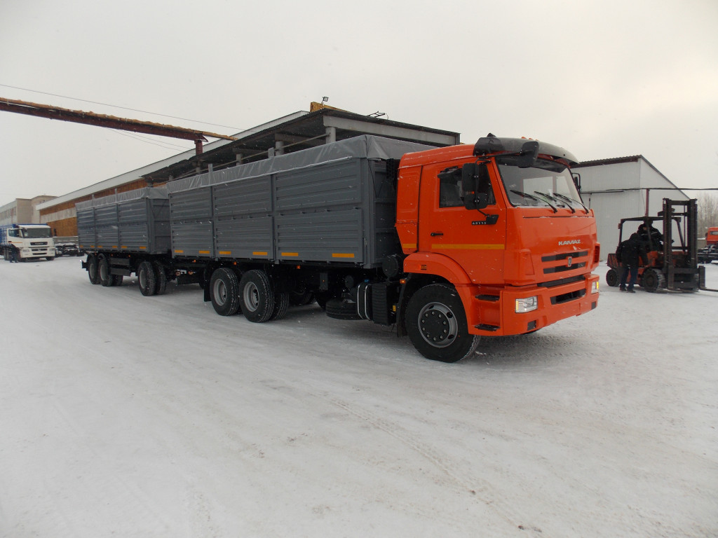 Бортовой зерновоз на базе шасси КАМАЗ 65115 с прицепом.