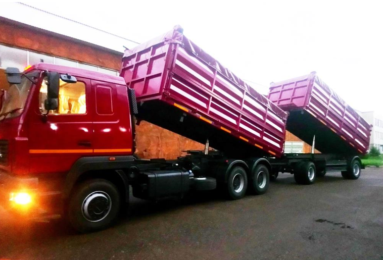 Зерновоз самосвал МАЗ 6312С9 с прицепом 25 куб. м